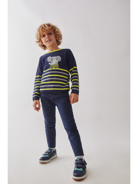 Pantalón con cinturilla interior ajustable y cierre botón frontal.