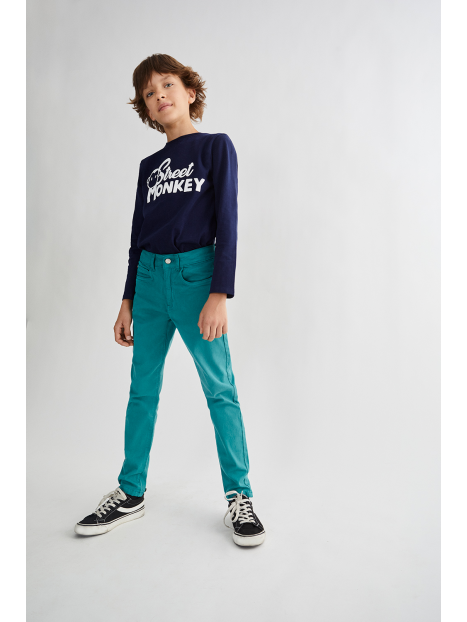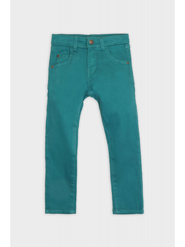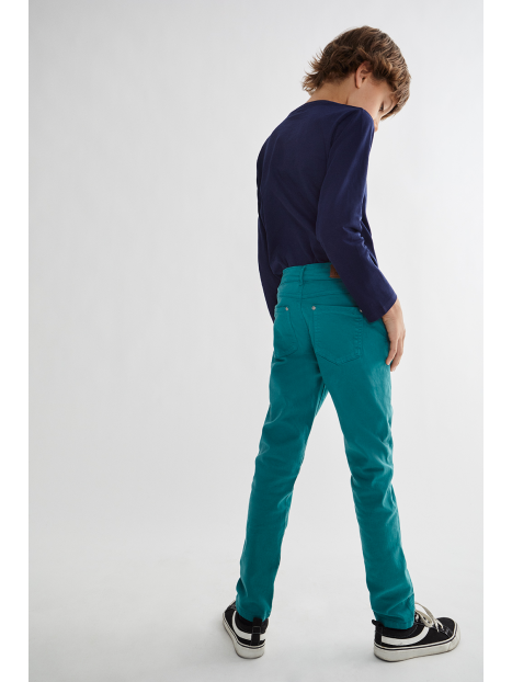 Pantalón con cinturilla elástica y cierre botón frontal.