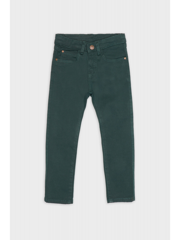 Pantalón con cinturilla elástica y cierre botón frontal.