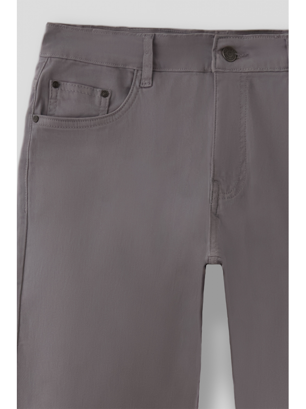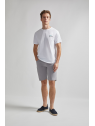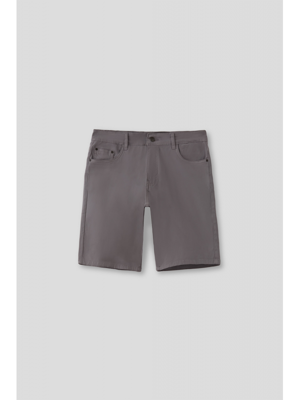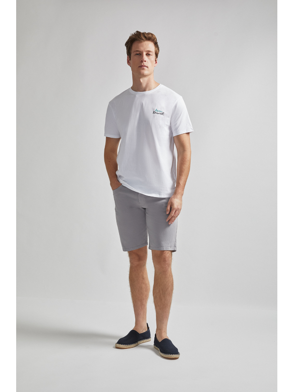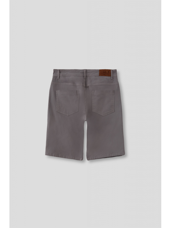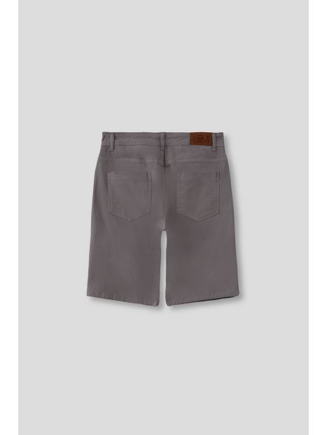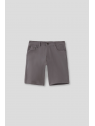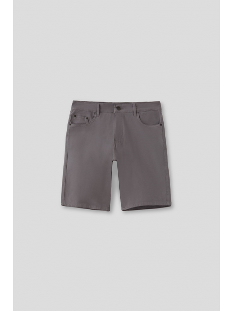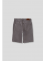 Bermuda estilo denim con cinco bolsillos. Cierre central mediante botón y cremallera, fornituras personalizadas y etiqueta en efecto piel en la cinturilla.