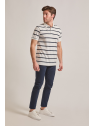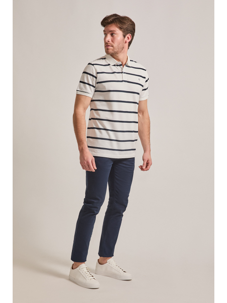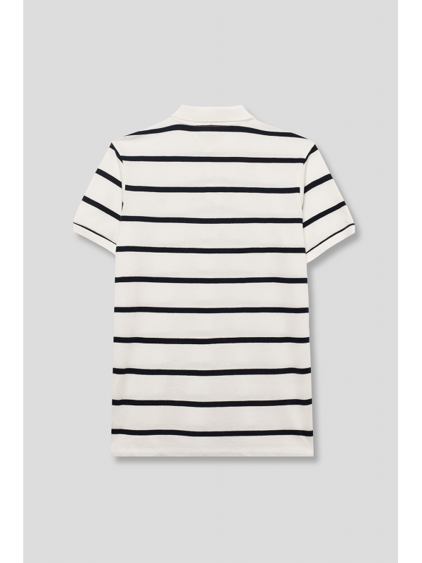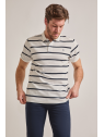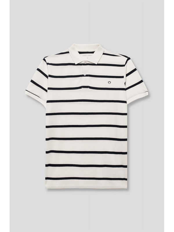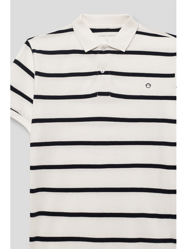 Con un diseño de rayas horizontales y cuello clásico con botones, este polo combina elegancia y estilo casual. Confeccionado en un tejido suave y transpirable, es la opción ideal para un look fresco y versátil.