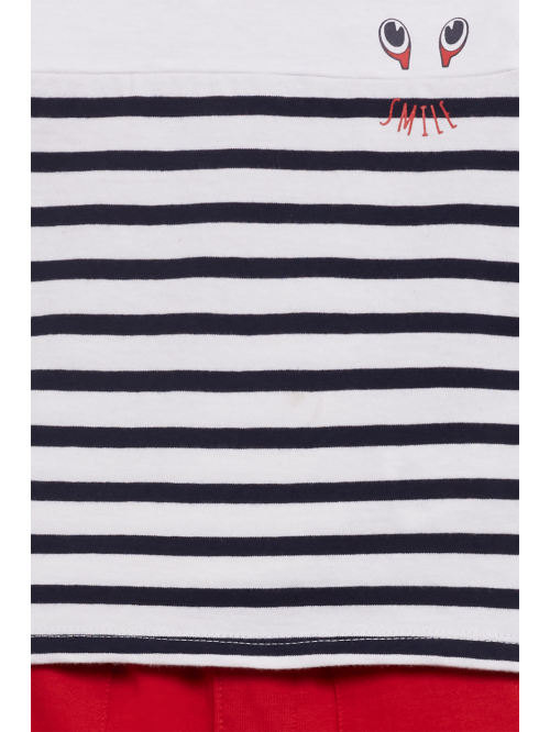 Lleva el estilo casual a un nuevo nivel con este conjunto dinámico y colorido. La camiseta presenta un diseño único con un monstruo amigable diciendo "Hey Dude!" que seguro captará la atención de todos. Con sus vibrantes mangas rojas y cuello a juego, esta camiseta es perfecta para añadir un toque de diversión a cualquier día. Para las tallas de meses, la camiseta incluye un práctico cierre de botones en el hombro, facilitando el vestir a los más pequeños.