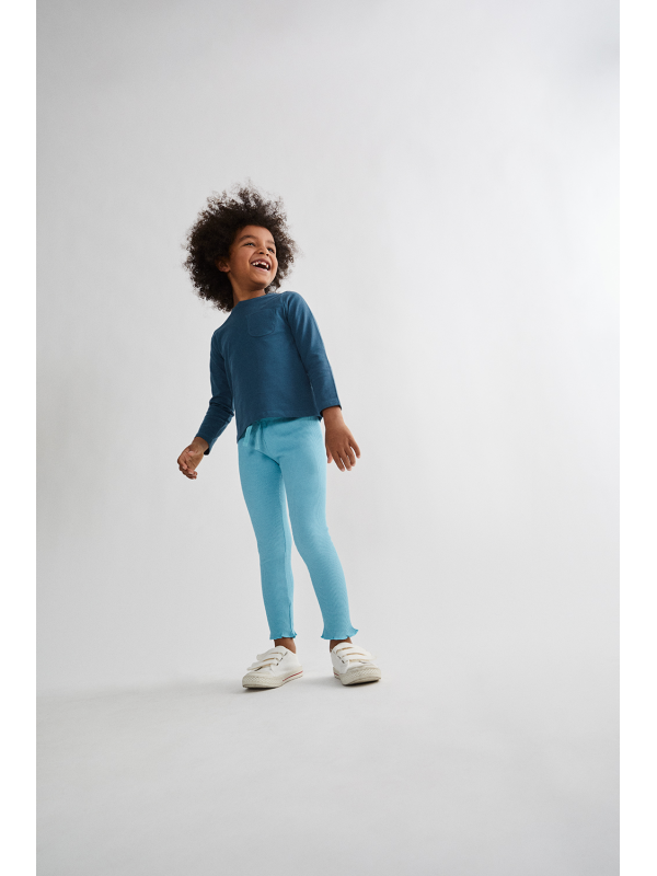 Legging con cintura de goma elástica y lazo para un mejor ajuste. Bajo rizado.