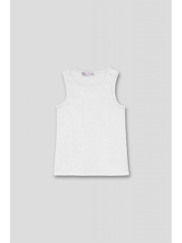 Camiseta tipo nadadora con cuello redondo y manga sisa.