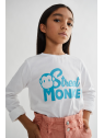 Camista de manga larga para niña de 2 - 16 años en color maquillaje. Detalle en la parte frontal de la prenda.