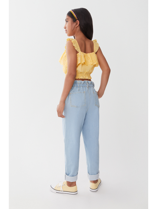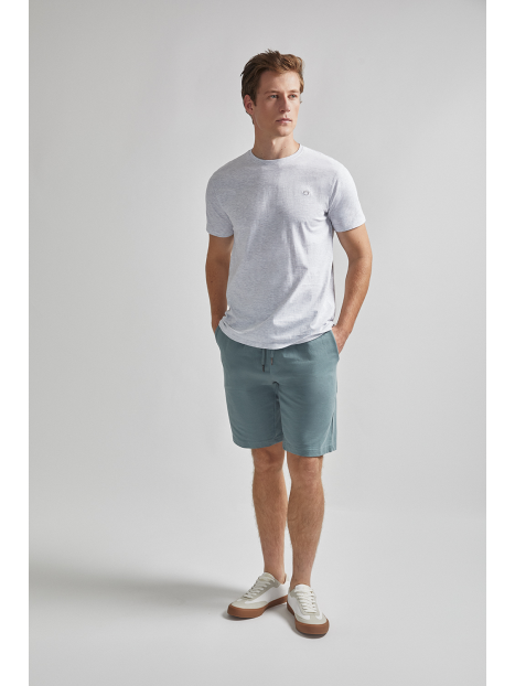 Pantalón corto de algodón con elástico revestido y cordón de ajuste en la cintura. Modelo de corte estándar , bolsillos al bies y un bolsillo insertado detrás.