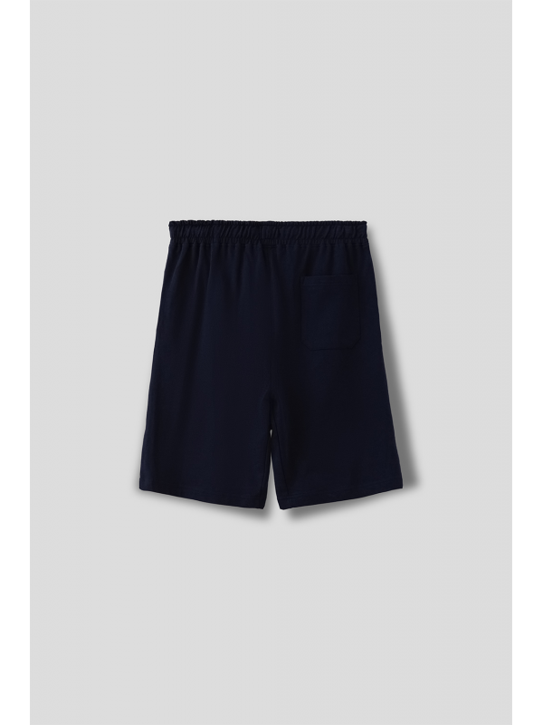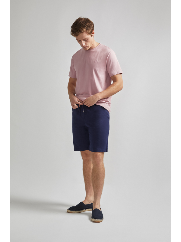 Pantalón corto de algodón con elástico revestido y cordón de ajuste en la cintura. Modelo de corte estándar , bolsillos al bies y un bolsillo insertado detrás.