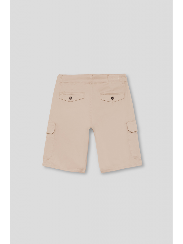 Bermudas cargo tipo chino diseñadas para la versatilidad y el confort. Disponibles en colores beige leña y marino, estas bermudas presentan un corte clásico con bolsillos laterales. Cintura ajustable para un ajuste óptimo.