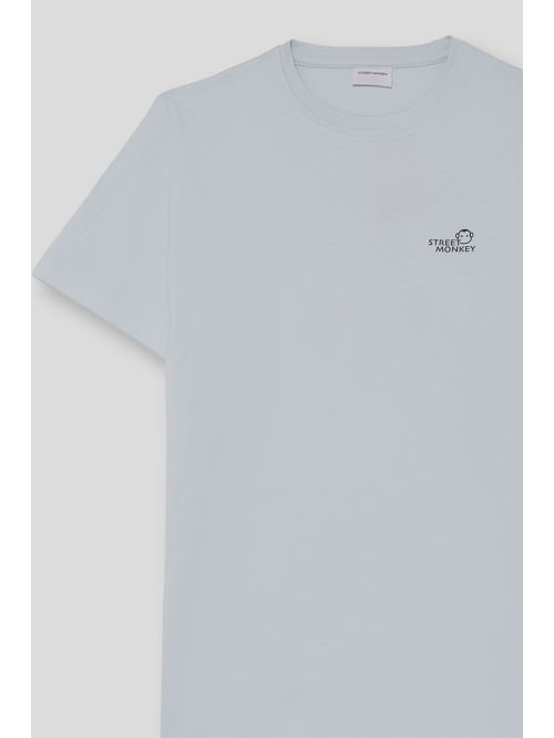 Camisa de manga larga para niño en color azul claro. Diseño liso con cuello button down, cierre frontal de botones y tejido ligero de tacto suave.