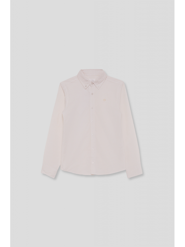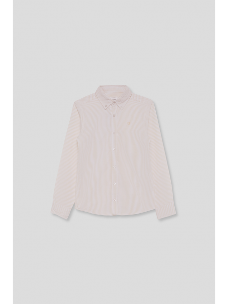Camisa oxford de manga larga para niño en color celeste con raya fina. Diseño clásico con cuello button down, cierre frontal de botones y tejido ligero.