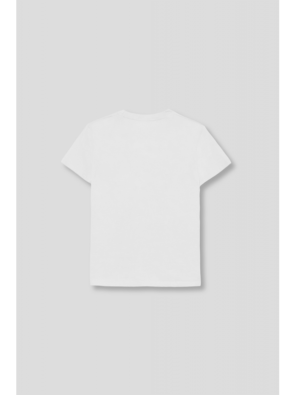 Camiseta para niño de 2 - 16 años. Detalle flocado en la parte frontal de la prenda.