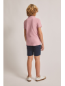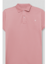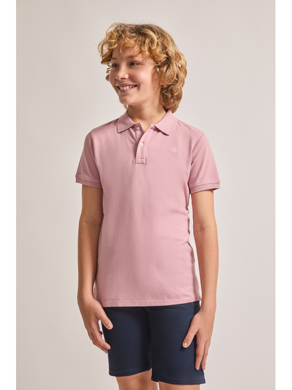 Polo de manga corta en color marino con detalle en el cuello y botones en la parte frontal de la prenda.