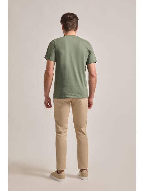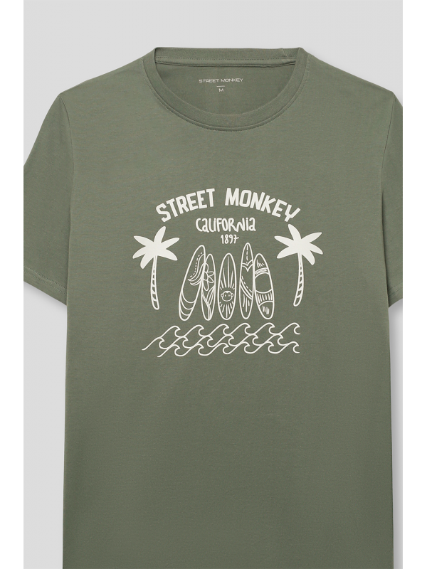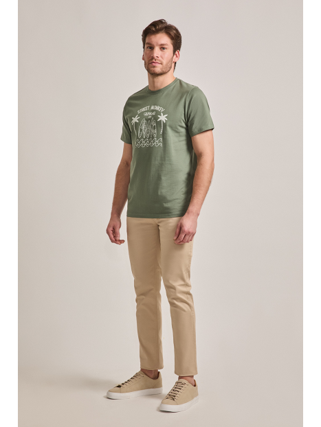 Camiseta de color verde oscuro con estampación personalizada, confeccionada en algodón. Cuenta con cuello redondo, manga corta y corte regular fit.