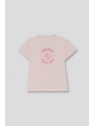 Color rosa claro con estampado frontal y detalle de flores en relieve. Tejido suave y cómodo, ideal para un look casual y versátil.
