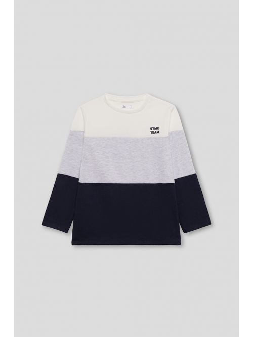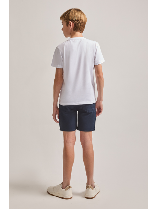Camiseta de manga corta para niño disponible en color marino, en tallas de 2 a 16 años.