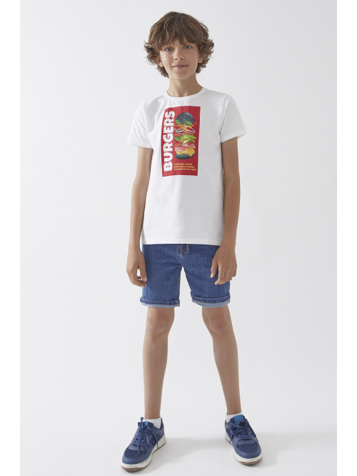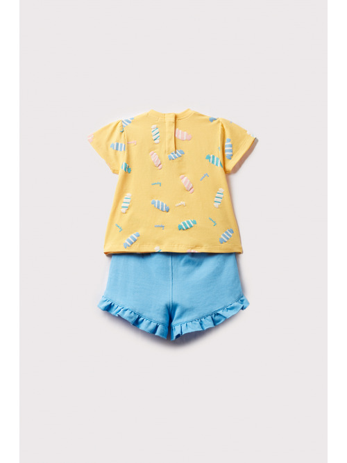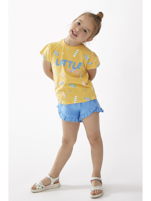 Bermuda color amarillo estampado, elástico en la cintura para un mejor ajuste y vuelto en bajo.