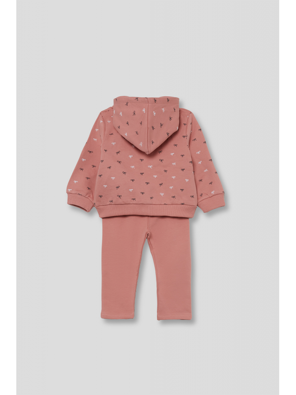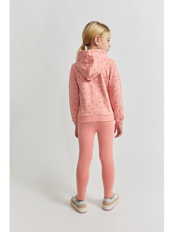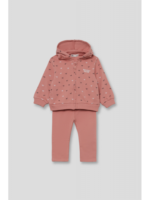 Conjunto de dos piezas afelpado, sudadera con capucha y leggings para bebé niña de 3 meses a 6 años. La sudadera con capucha en color maquillaje está decorada con un delicado estampado de lacitos y lleva la frase “Beautiful Dance” bordada en el pecho. Cuenta con cierre frontal de cremallera y acabados de canalé en los puños y el bajo para un ajuste suave y abrigado. Los leggings a juego, también en color maquillaje, presentan un diseño liso, ceñido y muy elástico que acompaña cada movimiento con total comodidad. En las tallas de meses, la sudadera incluye cierre con botones en la espalda para facilitar la puesta.