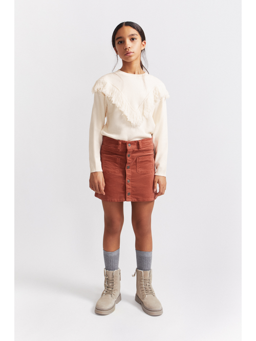 Falda de pana para niña disponible de la talla 2 a la 16 años.