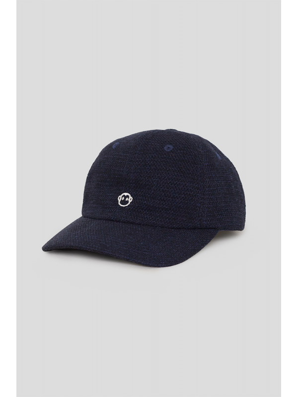Diseño de seis paneles con visera curva, confeccionado en tejido suave con acabado jaspeado. Presenta bordado frontal en contraste con el mono icónico de la marca y cierre ajustable en la parte trasera con detalle de etiqueta en piel sintética grabada.