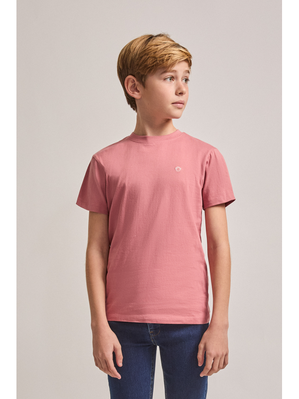 Camiseta lisa confeccionada en algodón con cuello redondo, manga corta y logo de la marca grabado al tono en el frontal. Corte regular fit.