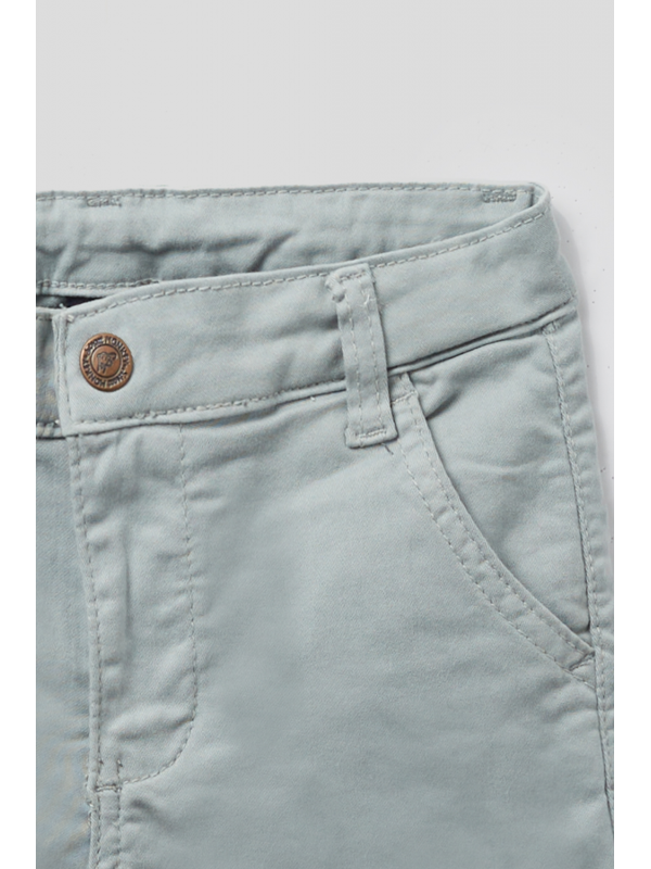 Bermuda china con cinturilla interior ajustable y cierre con botón frontal. Bolsillos en delantero y trasero con aplique etiqueta en espalda.