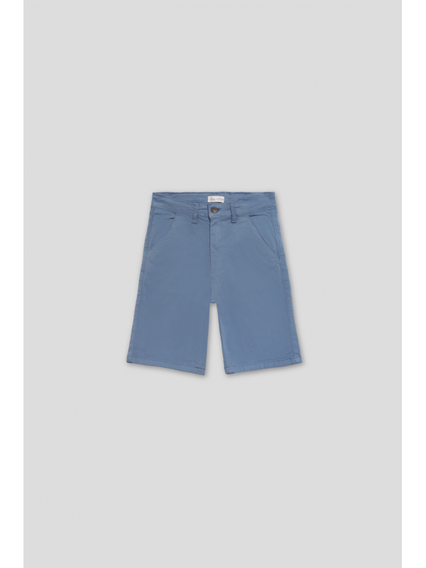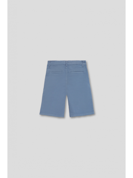 Bermuda china con cinturilla interior ajustable y cierre con botón frontal. Bolsillos en delantero y trasero con aplique etiqueta en espalda.