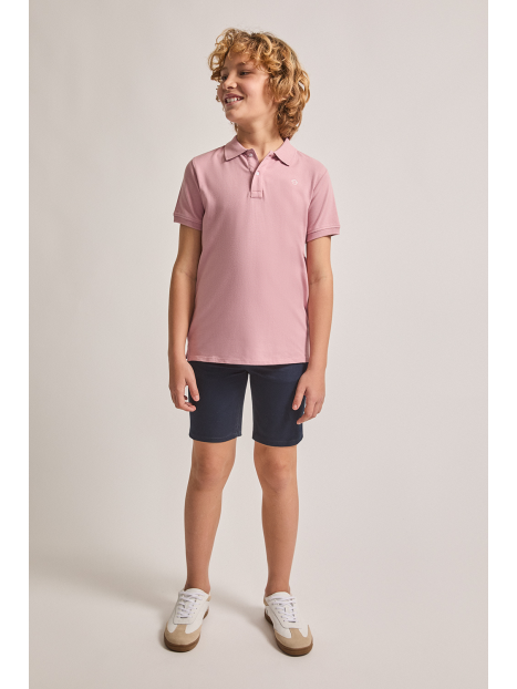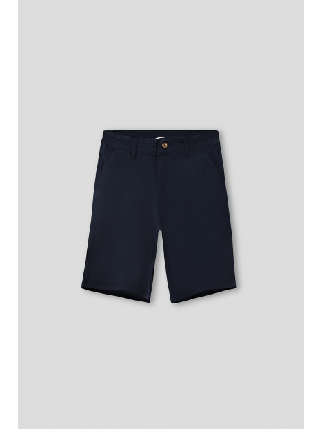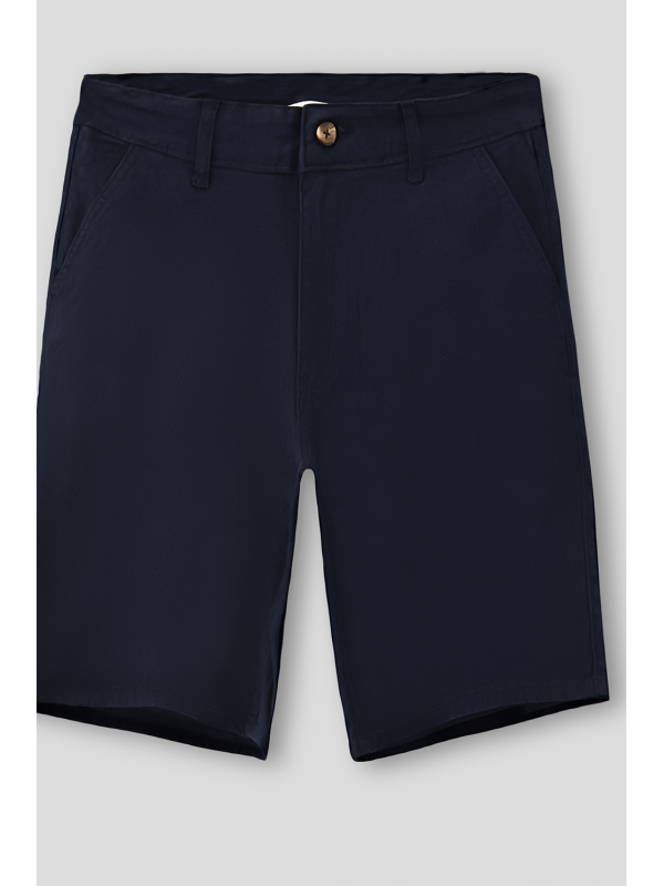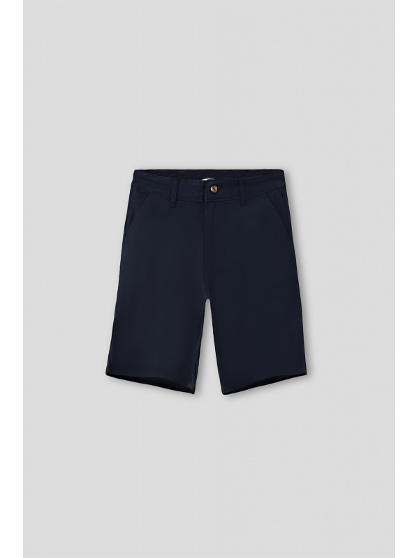 Bermuda china con cinturilla interior ajustable y cierre con botón frontal. Bolsillos en delantero y trasero con aplique etiqueta en espalda.