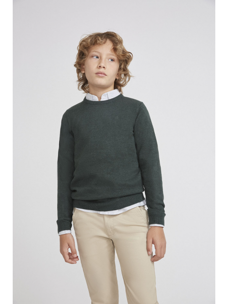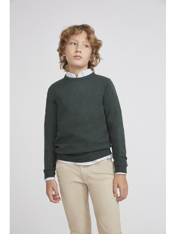 Jersey clásico para niño de 2 a 16 años disponible en varios colores. Ideal para cualquier ocasión, este suéter de diseño sencillo y elegante ofrece un ajuste cómodo y un estilo atemporal. Es perfecto para combinar con diferentes looks, tanto formales como casuales, gracias a su versatilidad y a la alta calidad de sus materiales. Un básico imprescindible en cualquier guardarropa masculino.