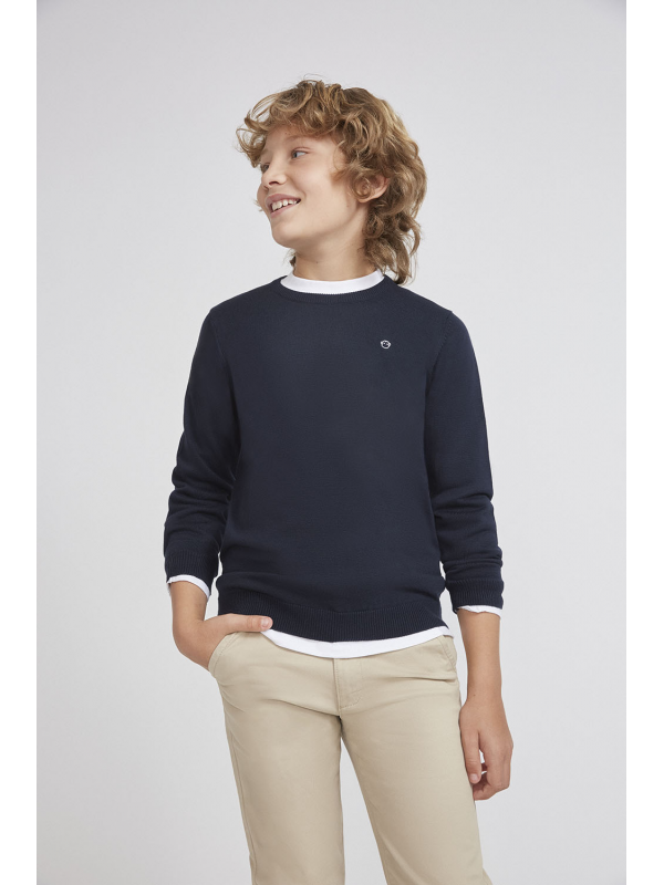 Jersey clásico para niño de 2 a 16 años disponible en varios colores. Ideal para cualquier ocasión, este suéter de diseño sencillo y elegante ofrece un ajuste cómodo y un estilo atemporal. Es perfecto para combinar con diferentes looks, tanto formales como casuales, gracias a su versatilidad y a la alta calidad de sus materiales. Un básico imprescindible en cualquier guardarropa masculino.
