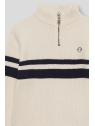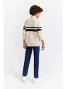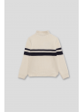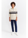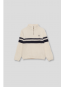 Jersey de punto grueso disponible en color crudo con detalle en marino, en tallas de 2 a 16 años.
