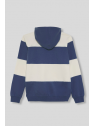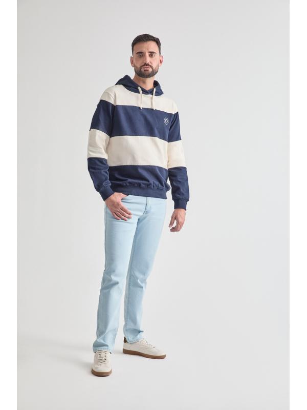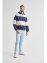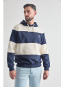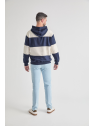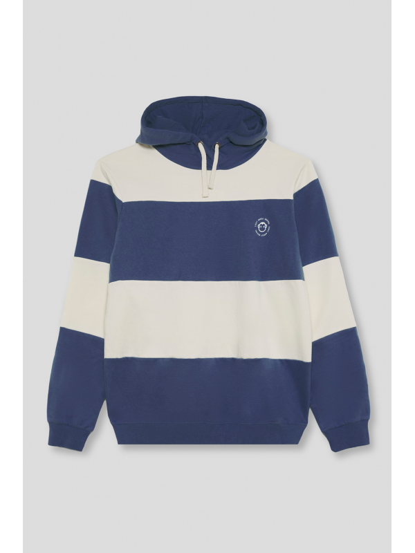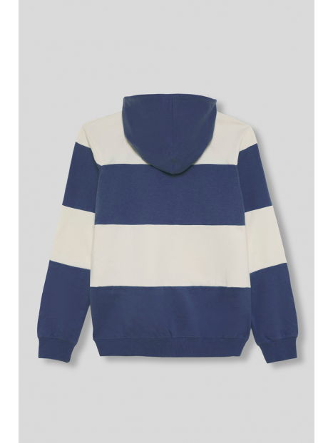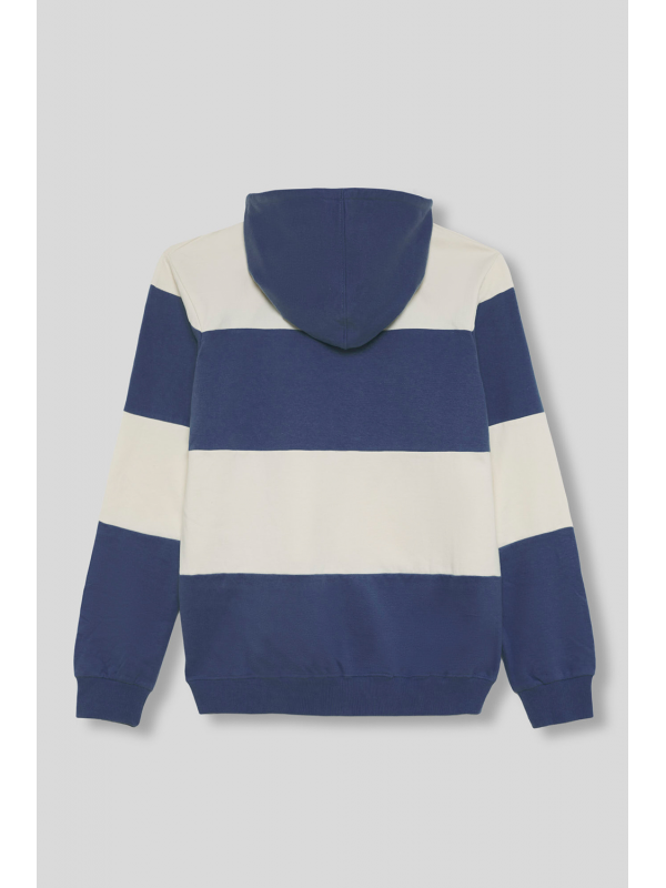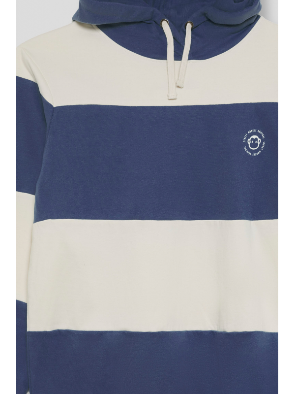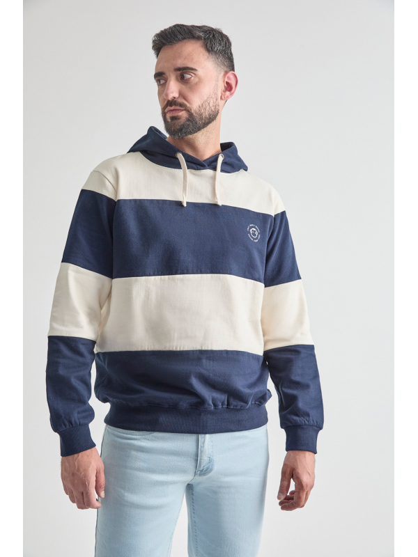 Sudadera con capucha disponible en tallas de la S a la 4XL. Diseño de rayas anchas con pequeño detalle estampado en el pecho, cordón ajustable y acabados en canalé que aportan un estilo casual y actual. Una prenda cómoda y versátil para el día a día.