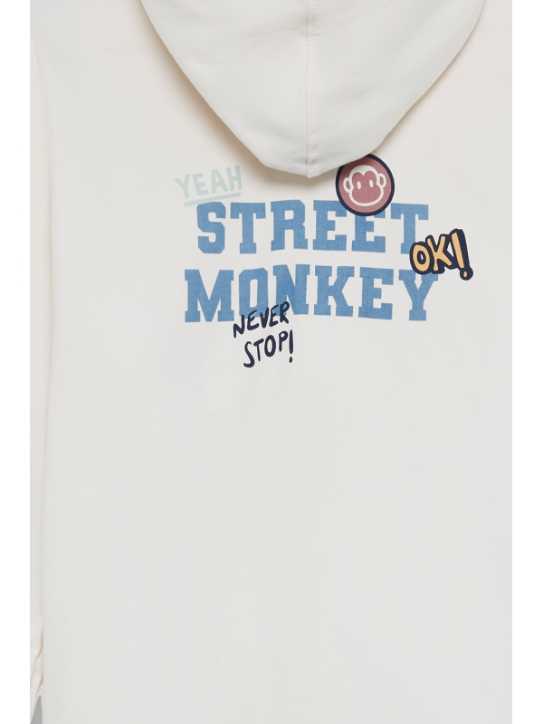 Sudadera con capucha y cremallera en tallas de la S a la 4XL. Diseño con pequeño detalle frontal y estampado grande en la espalda que aporta un estilo urbano y desenfadado, con capucha ajustable y acabados cómodos para el uso diario. Una prenda versátil y perfecta para completar cualquier look casual.