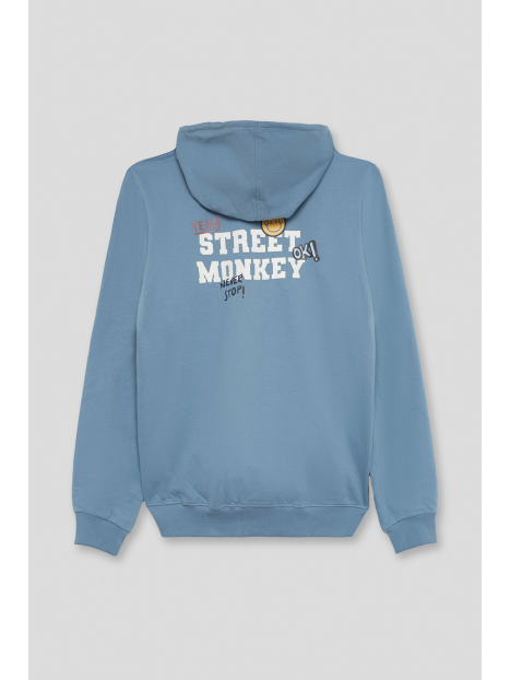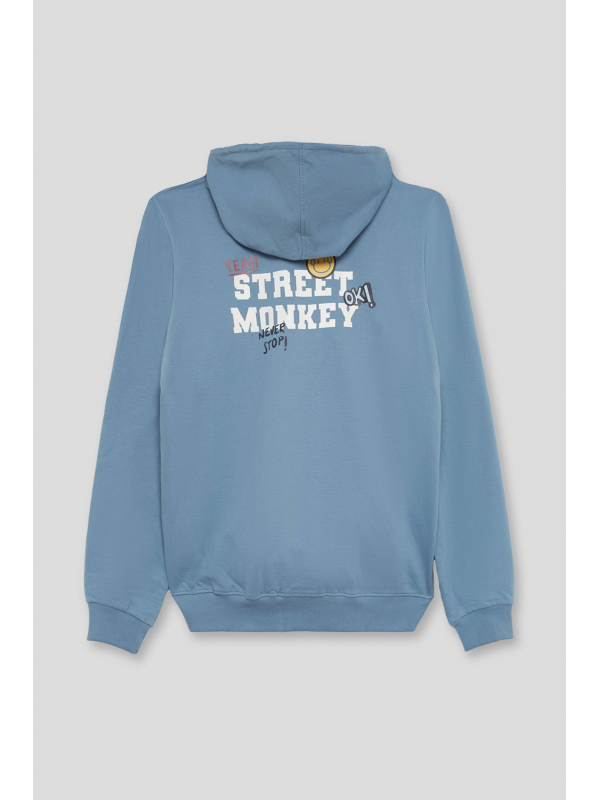 Sudadera con capucha y cremallera en tallas de la S a la 4XL. Diseño con pequeño detalle frontal y estampado grande en la espalda que aporta un estilo urbano y desenfadado, con capucha ajustable y acabados cómodos para el uso diario. Una prenda versátil y perfecta para completar cualquier look casual.