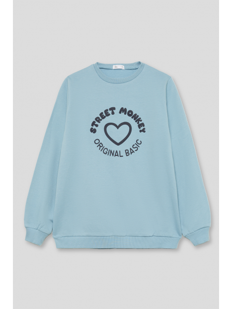 Confeccionada en un tejido suave y cálido, esta sudadera garantiza comodidad y durabilidad. El diseño presenta un encantador estampado de "Street Monkey Original Basic" con un corazón en el centro, aportando un toque divertido y original. Los puños acanalados y el dobladillo aseguran un ajuste cómodo y seguro, mientras que el corte clásico permite libertad de movimiento.