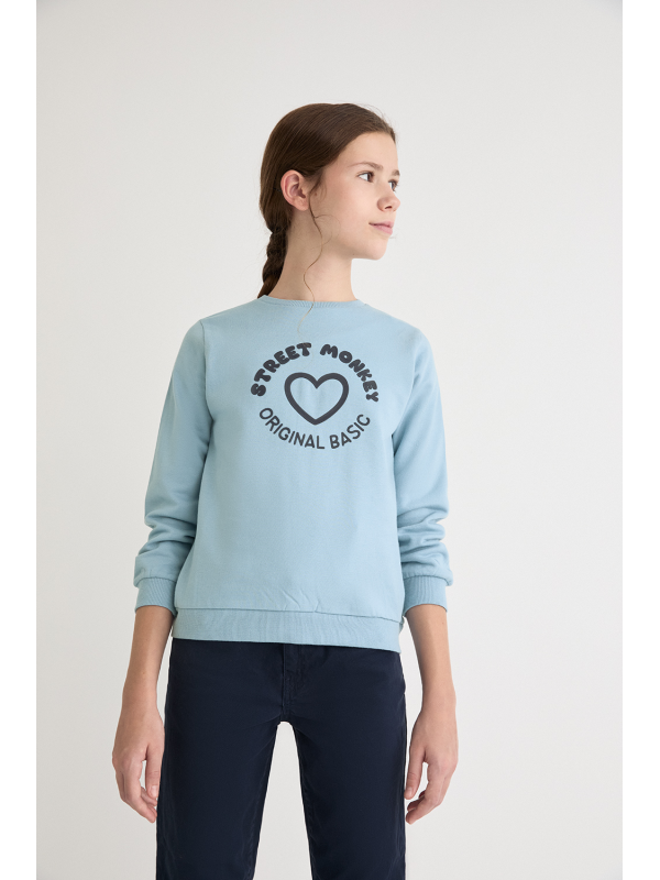 Sudadera para niña de 2 a 16 años disponible en varios colores: gris melange, eucalipto y maquillaje. Esta sudadera combina estilo y comodidad, ideal para mantener a tu pequeña abrigada y a la moda durante los días más frescos.