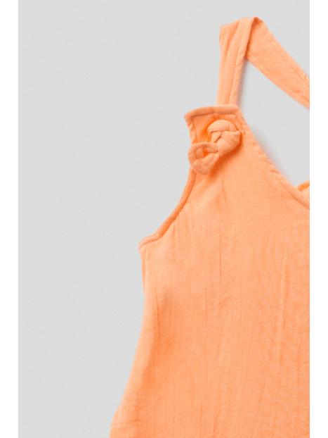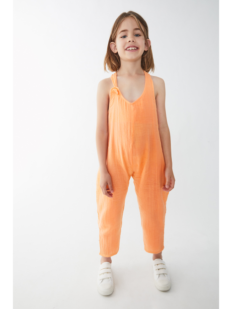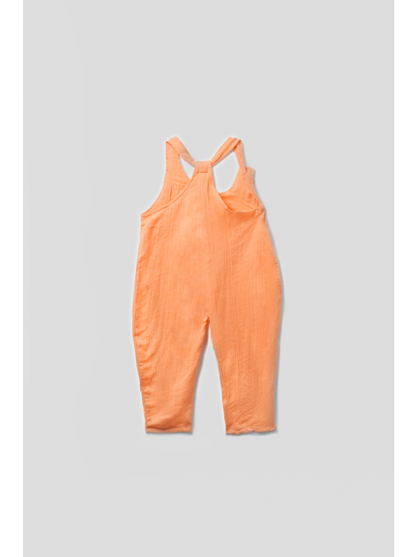Dungarees for girls from 2 to 16 years old in salmon color.