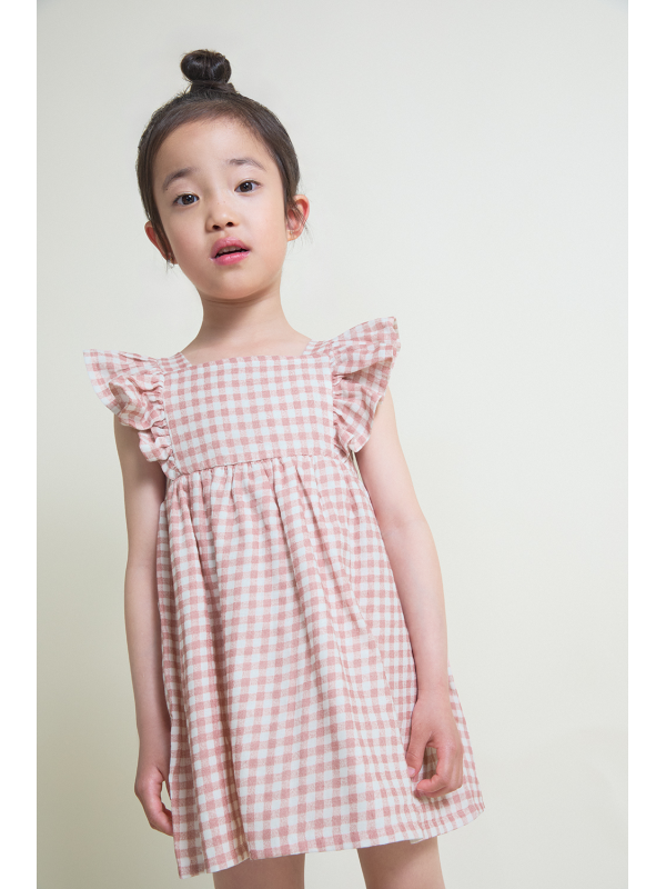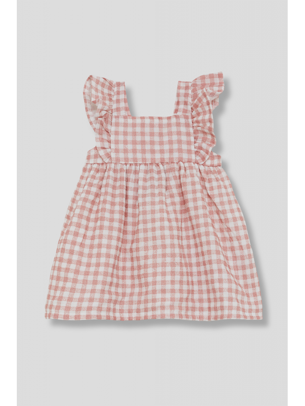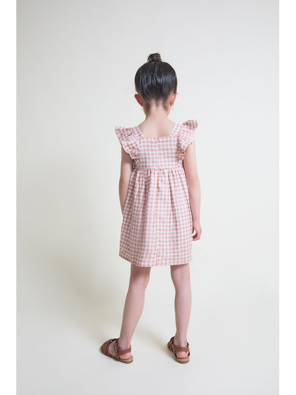 Diseño en cuadros vichy rosa maquillaje con volantes en los tirantes. Tejido ligero y fresco, perfecto para verano.