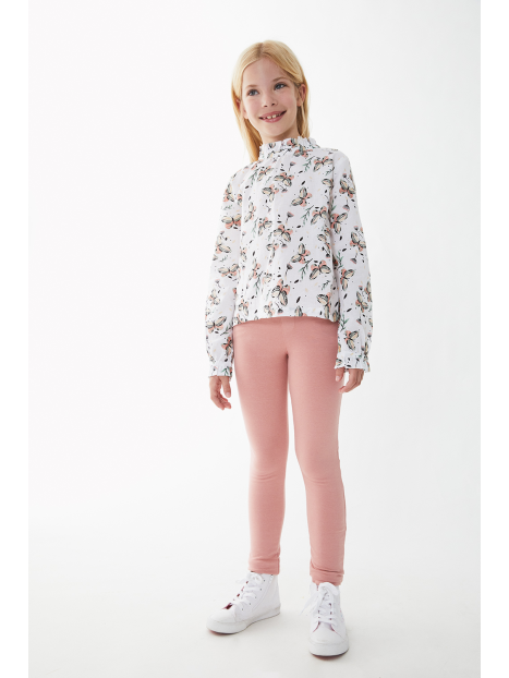 Blusa de popelín para niñas de 2 - 16 años floral de mangas largas con puños ajustados, cuello alto y abertura en la espalda con cierre de botón.