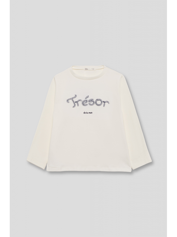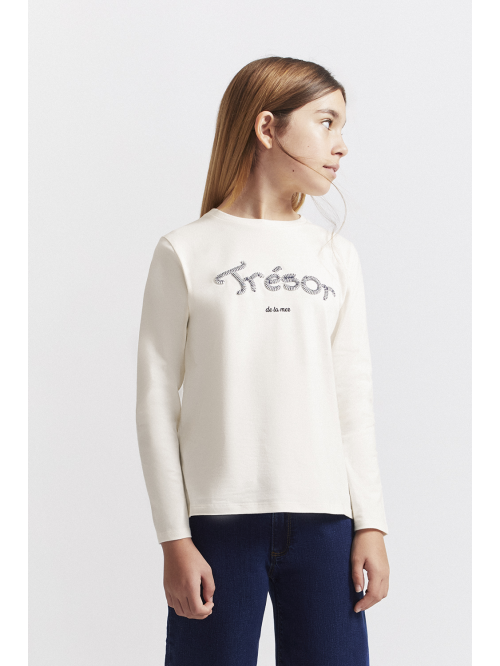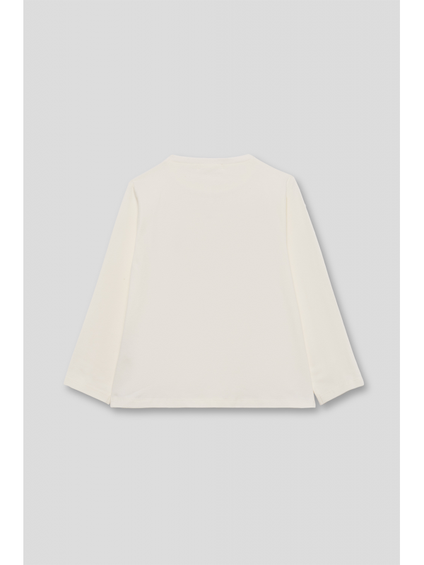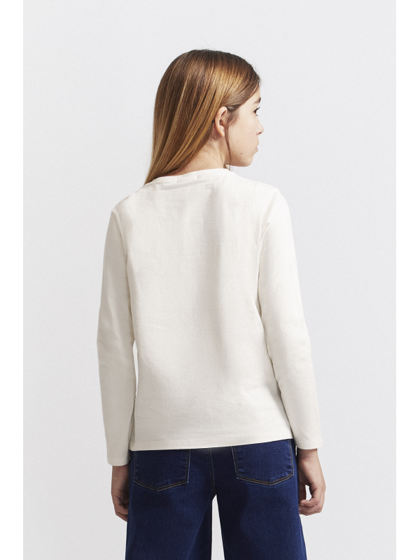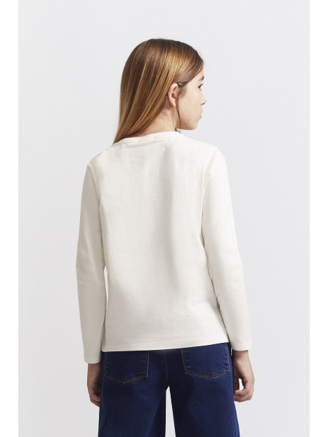 Camiseta de manga larga para niña disponible en color blanco roto, en tallas de 2 a 16 años.