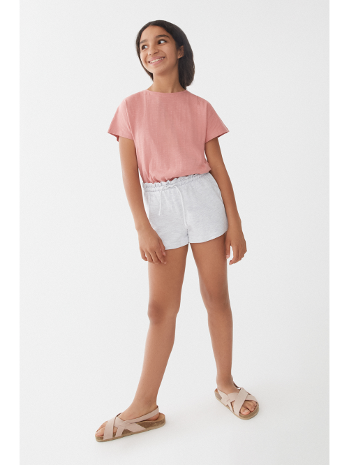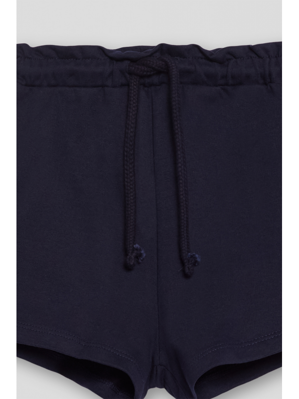 Shorts con cinturilla elástica y aplique cordones frontal. Bolsillo de tipo plastrón en espalda.