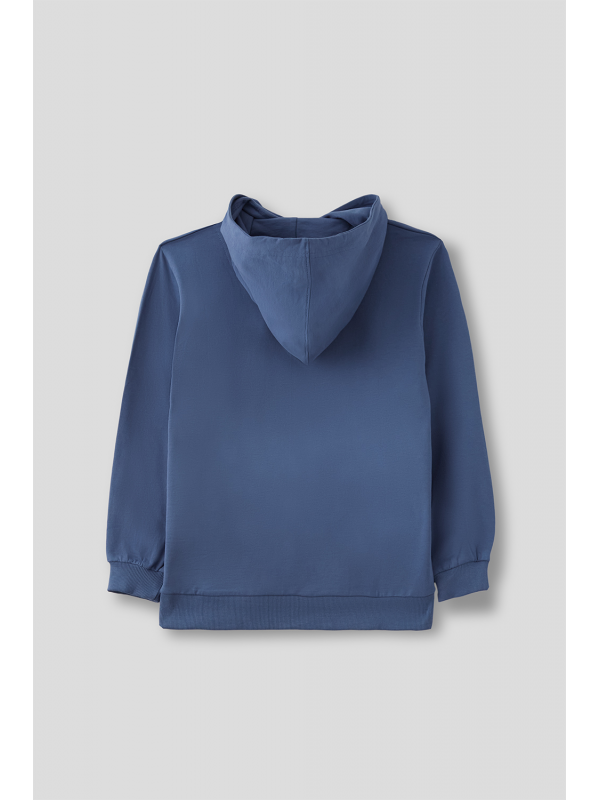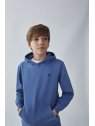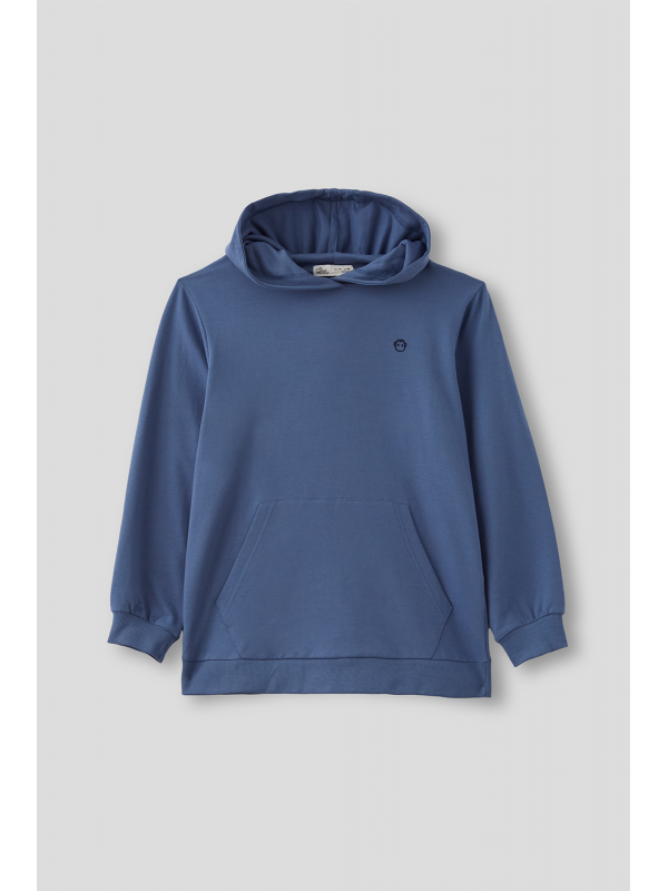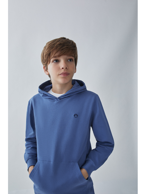 Sudadera confeccionada en algodón con gorro ajustable mediante cordón al tono, bolsillo estilo canguro.