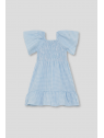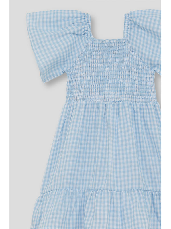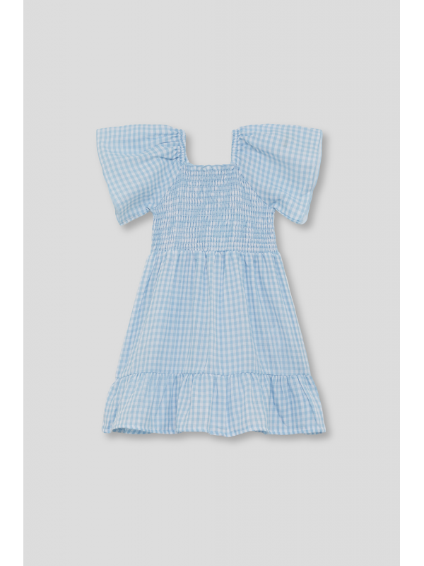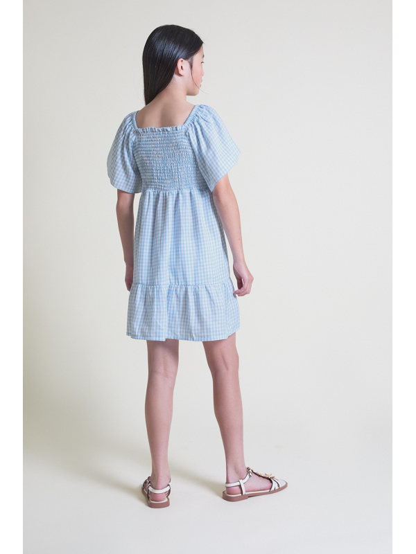 Vestido corto para niña de 2 a 16 años en cuadro vichy celeste.