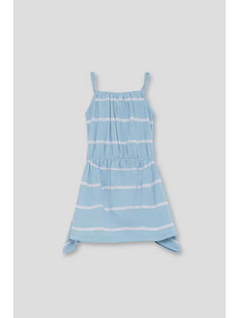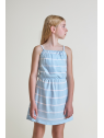 Vestido de tirantes para niña de 2 a 16 años en color celeste con rayas blancas.