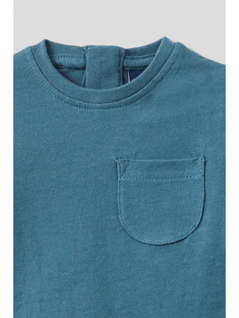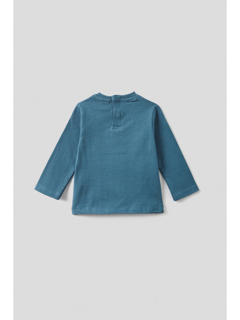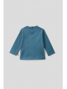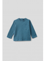 Camiseta confeccionada en suave punto de algodón, con cuello redondo, manga larga y pequeño bolsillo en el pecho. Incorpora abertura trasera con botones a presión en las tallas de meses, para facilitar la puesta. Un básico cómodo y fácil de combinar, ideal para el día a día.