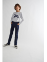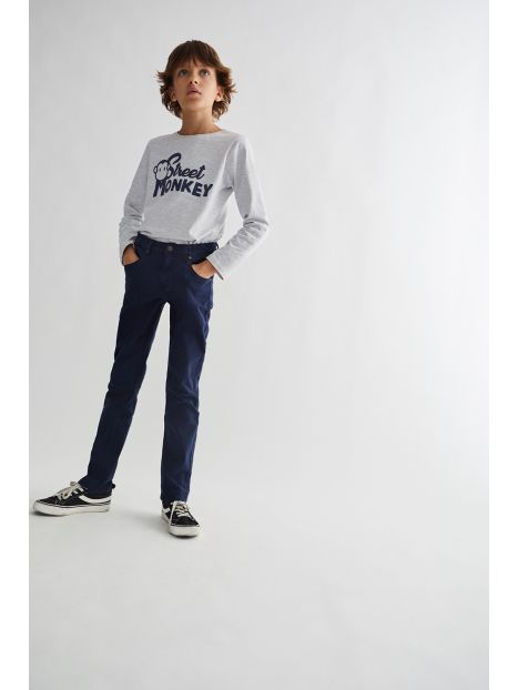 Pantalón con cinturilla elástica y cierre botón frontal.