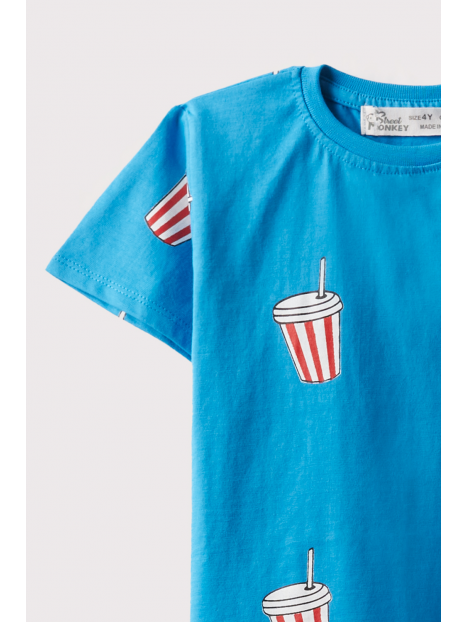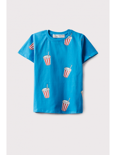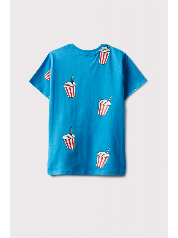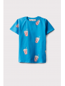 Camiseta de manga corta en color azul, con cuello redondo.