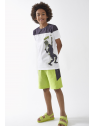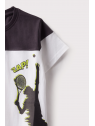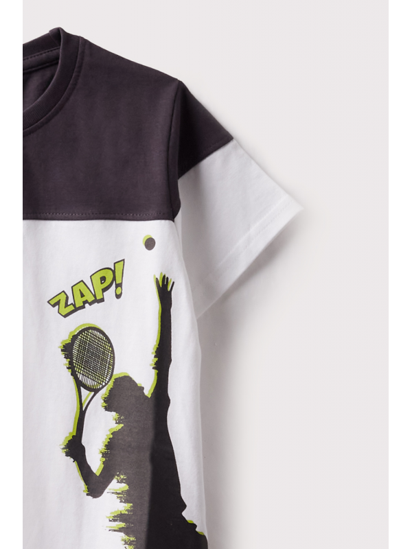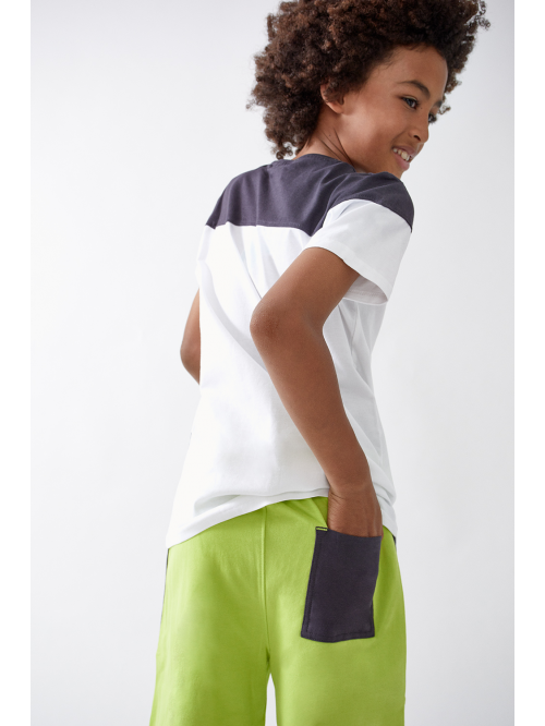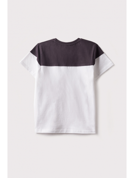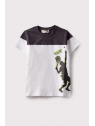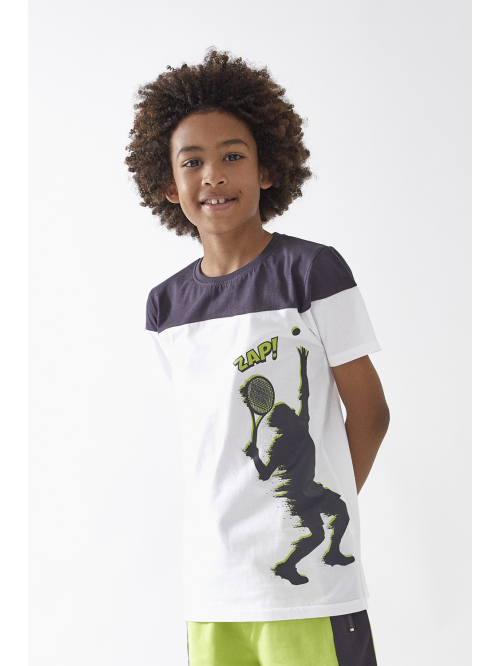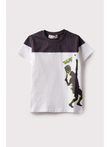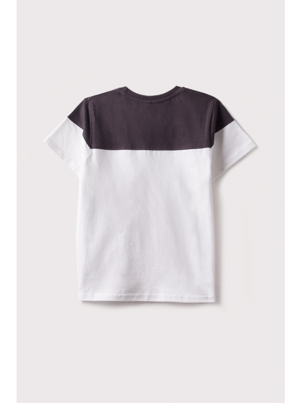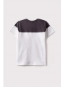 Camiseta de manga corta en color blanco, con cuello redondo y con aplique frontal.