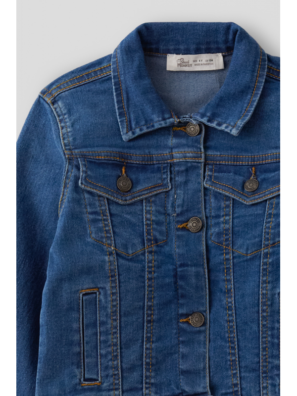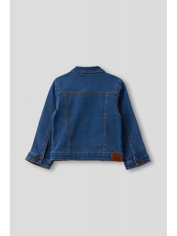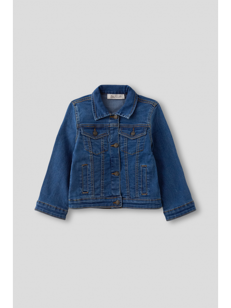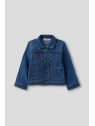 Cazadora en azul denim con cuello camisero y manga larga. Cierre botonadura frontal. Bolsillos de tipo palstrón en pechera con cierre botón.