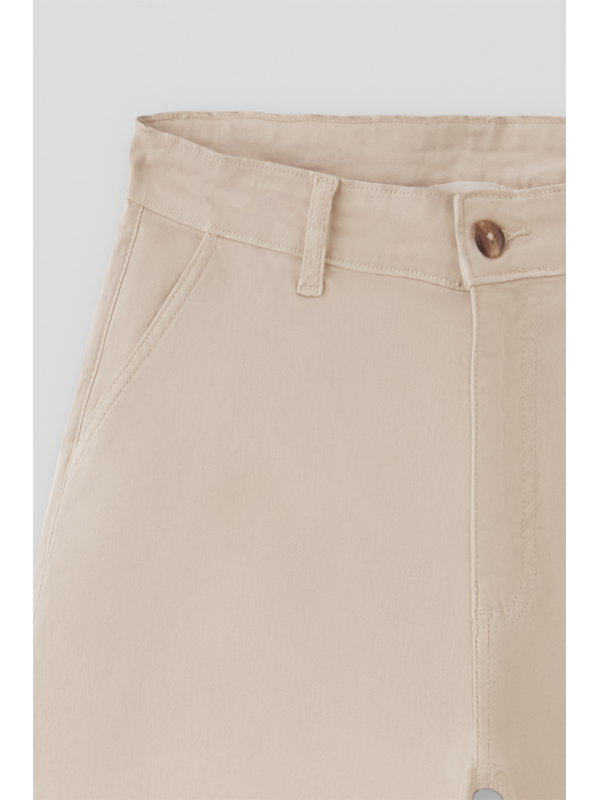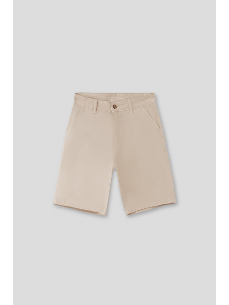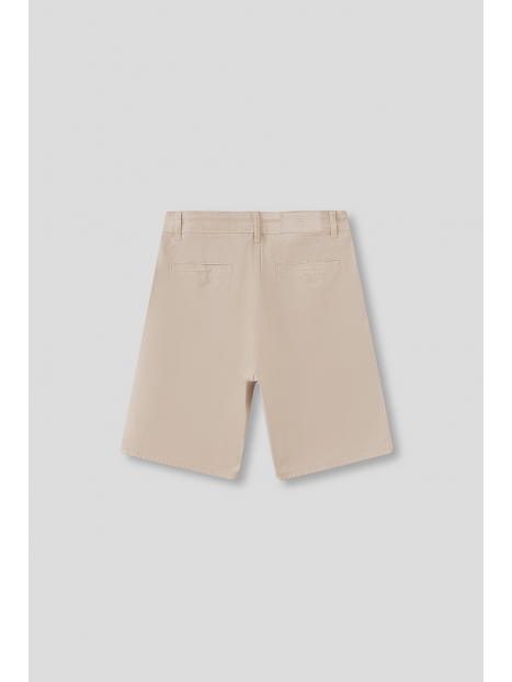 Bermuda china con cinturilla interior ajustable y cierre con botón frontal. Bolsillos en delantero y trasero con aplique etiqueta en espalda.