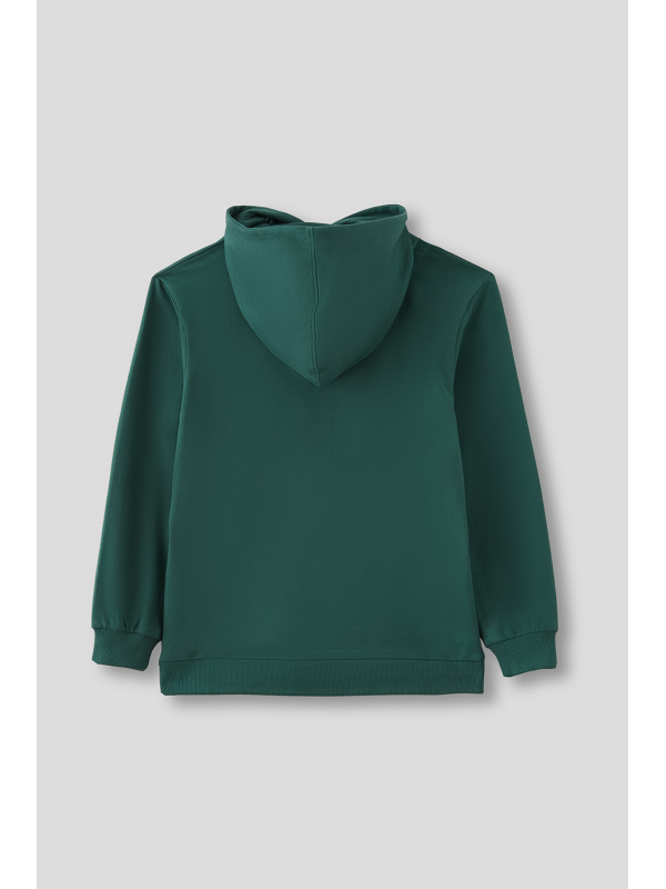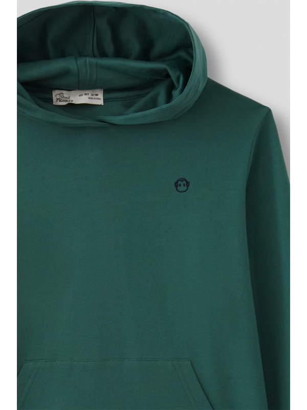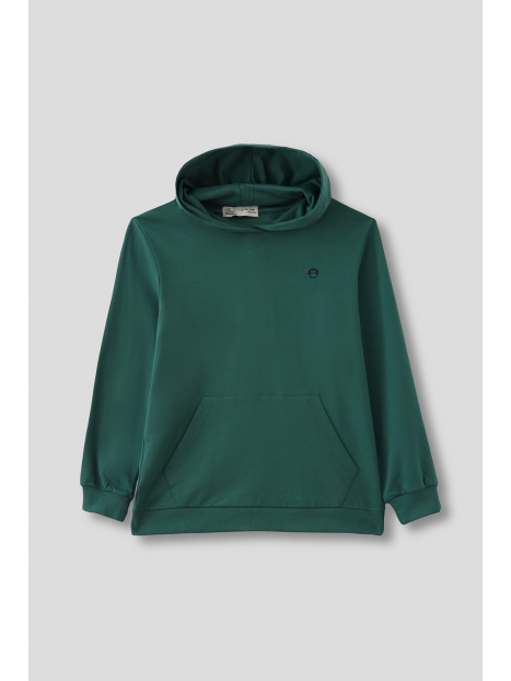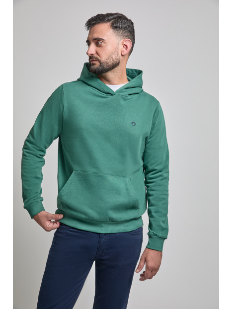 Sudadera sin perchar,confeccionada en algodón con gorro ajustable mediante cordón al tono, bolsillo estilo canguro. Puños y bajo en acabado elástico. Logo en el lateral. Corte regular fit.